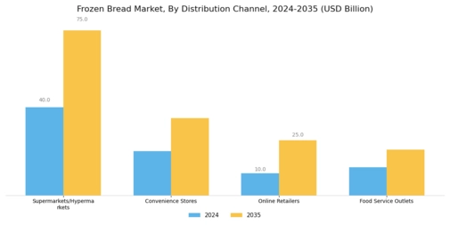 The Global Frozen Bread Market Industry benefits from the expansion of retail distribution channels, which enhances product accessibility for consumers. Supermarkets, hypermarkets, and online grocery platforms are increasingly stocking a variety of frozen bread products, catering to diverse consumer preferences. This trend is particularly significant in emerging markets, where the growth of modern retail formats is facilitating wider distribution. As a result, consumers are more likely to encounter frozen bread options in their local stores, driving sales. The projected growth of the market to 155.8 USD Billion by 2035 underscores the importance of effective distribution strategies in meeting consumer demand.