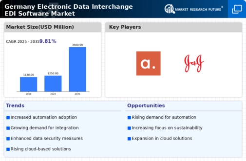 Enhanced collaboration among trading partners is emerging as a crucial driver for the Germany electronic data interchange software market. Businesses are increasingly recognizing the value of seamless communication and data sharing with suppliers, customers, and logistics providers. EDI solutions facilitate this collaboration by enabling real-time data exchange, which is essential for effective supply chain management. The ability to share critical information, such as order statuses and inventory levels, fosters stronger relationships and improves overall operational efficiency. As companies strive to optimize their supply chains and enhance customer satisfaction, the adoption of electronic data interchange software is likely to rise. This trend is particularly relevant in industries such as automotive and pharmaceuticals, where timely information exchange is vital for maintaining competitive advantage.