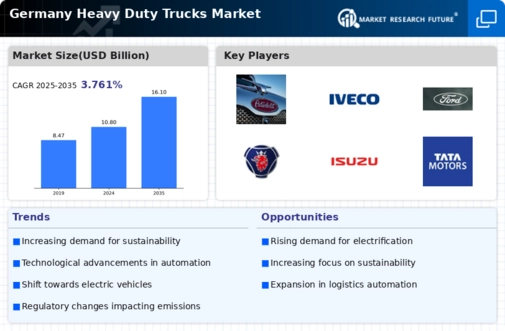 The Germany Heavy Duty Trucks Market is characterized by intense competition among established manufacturers striving to capture a larger share of an evolving market. This sector is influenced by several factors, including regulatory guidelines focusing on emissions, advancements in technology, and the growing demand for fuel-efficient and sustainable transportation solutions. The competitive landscape comprises both domestic and international players, each vying for innovation to improve their product offerings and enhance operational efficiencies.