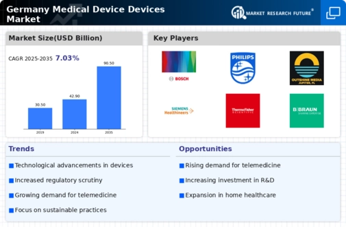 Technological advancements play a crucial role in shaping the germany medical device market. Innovations in areas such as minimally invasive surgery, telemedicine, and wearable health monitoring devices are transforming patient care and treatment methodologies. The German medical device sector is characterized by a strong emphasis on research and development, with companies investing approximately 7% of their revenue into innovative technologies. This commitment to innovation not only enhances the efficacy of medical devices but also improves patient outcomes. Moreover, the integration of artificial intelligence and machine learning into medical devices is expected to revolutionize diagnostics and treatment protocols. As these technologies continue to evolve, they are likely to drive significant growth within the germany medical device market, attracting both domestic and international investments.