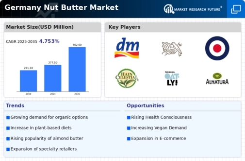 The growing awareness of health and nutrition among consumers in Germany appears to be a primary driver for the nut butter market. As individuals increasingly seek healthier alternatives to traditional spreads, the demand for nut butters, which are often perceived as nutritious and beneficial, rises. According to recent data, the nut butter segment within the Germany nut butter market has experienced a compound annual growth rate of approximately 5% over the past few years. This trend indicates a shift towards plant-based diets, with nut butters being favored for their protein content and healthy fats. Furthermore, the increasing prevalence of dietary restrictions, such as gluten-free and vegan diets, further propels the consumption of nut butters, as they serve as versatile and nutritious options for a wide range of consumers.