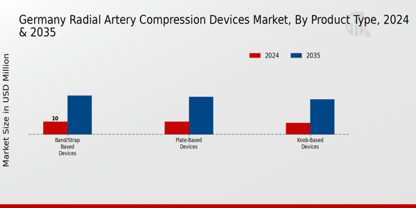 The radial artery-compression-devices market in Germany is characterized by a competitive landscape that is increasingly shaped by innovation, strategic partnerships, and a focus on enhancing patient outcomes. Key players such as Terumo Corporation (JP), Abbott Laboratories (US), and B. Braun Melsungen AG (DE) are actively engaged in refining their product offerings and expanding their market presence. Terumo Corporation (JP) emphasizes innovation in its product development, particularly in the realm of minimally invasive techniques, which aligns with the growing demand for less traumatic medical procedures. Meanwhile, Abbott Laboratories (US) focuses on strategic acquisitions to bolster its portfolio, thereby enhancing its competitive edge in the market. B. Braun Melsungen AG (DE) adopts a regional expansion strategy, aiming to strengthen its foothold in Germany while also exploring opportunities in neighboring markets. Collectively, these strategies contribute to a dynamic competitive environment that is responsive to evolving healthcare needs.