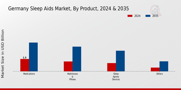 Germany Sleep Aids Market Research Report By Product (Mattresses & Pillows, Medications, Sleep Apnea Devices, Others) and By Sleep-Disorder (Insomnia, Sleep Apnea, Restless Legs Syndrome, Narcolepsy, Sleep Walking, Other Sleep Disorders) - Forecast to 2035