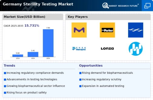 Germany's Sterility Testing Market has been experiencing significant growth driven by various key factors. The increasing emphasis on product safety and regulations in the pharmaceutical and biotechnology sectors is a major driver, as companies in these industries must adhere to stringent sterilization standards. The German government and regulatory bodies enforce rigorous quality control measures, particularly for pharmaceutical products, influencing manufacturers to invest in advanced sterility testing methods.