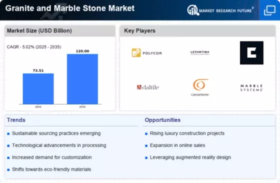 The Middle East and Africa granite marble stone market, valued at 3.0%, presents untapped opportunities driven by increasing construction activities and a growing preference for luxury materials. The region's economic diversification efforts and investments in infrastructure projects are key growth drivers. Additionally, the rising demand for high-quality finishes in residential and commercial spaces is fostering market expansion, supported by favorable government policies.