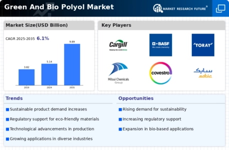 Government regulations and initiatives promoting the use of bio-based materials significantly influence the Global Green And Bio Polyol Market Industry. Many countries are implementing policies aimed at reducing carbon emissions and encouraging the adoption of renewable resources. For instance, various governments are offering incentives for companies that utilize bio-based polyols in their products. These regulations not only foster innovation but also create a favorable environment for market players. The increasing support from governmental bodies is likely to enhance the market's growth trajectory, aligning with the industry's projected expansion to 9.89 USD Billion by 2035.