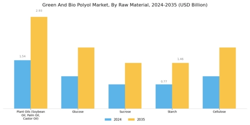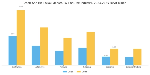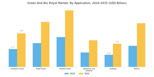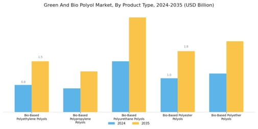 Consumer preference for eco-friendly products is a significant driver of the Global Green And Bio Polyol Market Industry. As awareness of environmental issues grows, consumers are more inclined to choose products that are sustainable and have a lower environmental impact. This trend is influencing manufacturers to incorporate bio-based polyols into their product lines, thereby enhancing their market appeal. The increasing consumer demand for sustainable options is likely to stimulate market growth, with projections indicating a rise to 5.14 USD Billion in 2024 and further growth to 9.89 USD Billion by 2035.