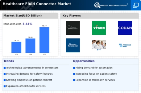 Technological advancements play a pivotal role in shaping the Global Healthcare Fluid Connector Market Industry. Innovations such as smart connectors and automated systems are enhancing the efficiency and reliability of fluid management in healthcare applications. These advancements not only improve patient outcomes but also streamline operational processes within healthcare facilities. The anticipated growth of the market, projected to reach 65.5 USD Billion by 2035, underscores the importance of continuous innovation in fluid connector technology. As healthcare providers seek to optimize their operations, the demand for advanced fluid connectors is likely to rise, further propelling market expansion.