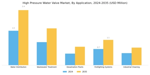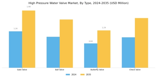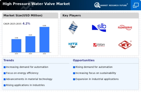 The Global High Pressure Water Valve Market is projected to grow from 4221.10 USD Billion in 2024 to 6651.18 USD Billion by 2035, reflecting a robust CAGR of 4.24%.