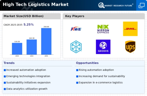 The surge in e-commerce activities is a pivotal driver for the Global High Tech Logistics Market Industry. With consumers increasingly preferring online shopping, logistics companies are compelled to adapt their operations to meet heightened delivery expectations. This trend is evident as the market is projected to reach 250 USD Billion by 2035, fueled by the need for efficient last-mile delivery solutions. Companies are investing in advanced logistics technologies to streamline processes and enhance customer satisfaction. The integration of real-time tracking and automated delivery systems is becoming commonplace, indicating a significant shift in logistics strategies to accommodate e-commerce demands.