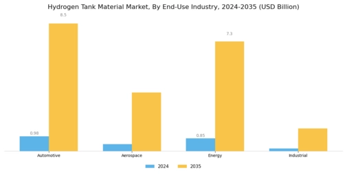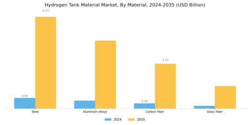 Innovations in materials science are significantly impacting the Global Hydrogen Tank Material Market Industry. Advanced composite materials and high-strength alloys are being developed to enhance the safety and efficiency of hydrogen storage tanks. These advancements not only improve the structural integrity of tanks but also reduce weight, which is crucial for transportation applications. As a result, the market is expected to witness a compound annual growth rate of 21.65% from 2025 to 2035, indicating a robust shift towards more efficient storage solutions that can accommodate the growing hydrogen economy.