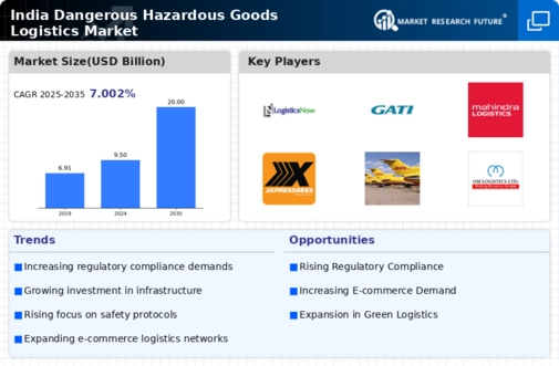 The India Dangerous Hazardous Goods Logistics Market is characterized by its highly regulated environment and the growing demand for safe and efficient transportation of hazardous materials. As industries proliferate, including chemicals, pharmaceuticals, and oil and gas, the logistics sector has had to adapt to ensure compliance with stringent safety regulations. Companies in this space are competing on the basis of their operational capacities, expertise in handling hazardous materials, and their ability to navigate complex regulations.