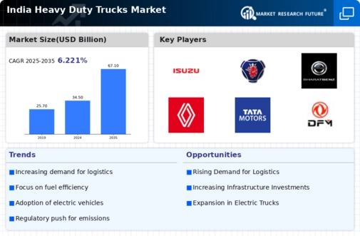 The India Heavy Duty Trucks Market is characterized by intense competition among various manufacturers, each striving to capture a significant share of this growing segment. With rising infrastructure development, increased urbanization, and the expansion of logistics networks, demand for heavy-duty trucks has been on the rise. The market is particularly appealing due to the increasing number of construction projects, enhancements in freight transport, and government initiatives aimed at boosting the manufacturing sector. Players in this market are investing heavily in research and development to innovate and produce technologically advanced vehicles designed for efficiency, sustainability, and performance.