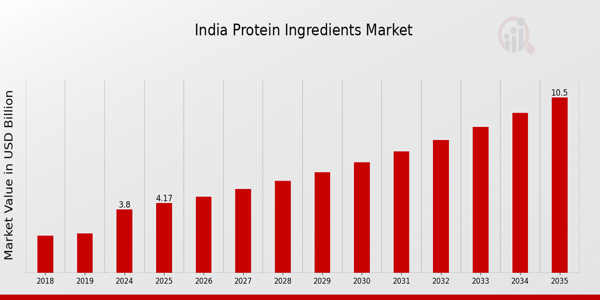 Government initiatives aimed at improving nutritional standards in India are positively influencing the protein ingredients market. Programs focused on enhancing food security and promoting balanced diets are encouraging the incorporation of protein-rich foods into daily consumption. The government has launched various schemes to educate the public about the importance of protein in nutrition, which is likely to drive demand for protein ingredients. Additionally, subsidies and support for local protein producers may further stimulate growth in the market. As these initiatives gain traction, the protein ingredients market is expected to see increased investment and innovation, ultimately benefiting consumers through improved access to high-quality protein sources.