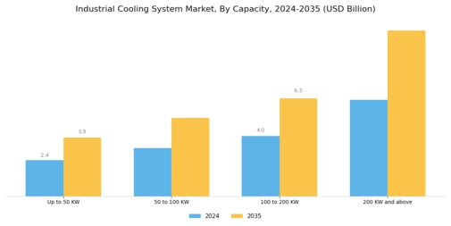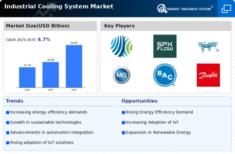 The expansion of the manufacturing sector globally plays a pivotal role in driving the Global Industrial Cooling System Market Industry. As countries invest in infrastructure and manufacturing capabilities, the demand for reliable cooling systems increases. For example, the rise of smart factories necessitates advanced cooling solutions to maintain optimal operating conditions. This trend is expected to contribute to the market's growth, with projections indicating an increase to 26.6 USD Billion by 2035. The manufacturing sector's growth is closely linked to the need for efficient cooling systems that support production processes.