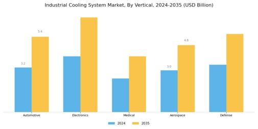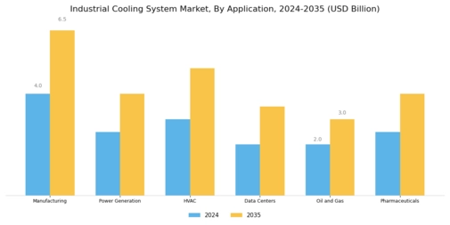 The rising demand from data centers is a significant driver of the Global Industrial Cooling System Market Industry. With the exponential growth of digital data and cloud computing, data centers require efficient cooling solutions to maintain optimal operating temperatures. The need for reliable cooling systems is underscored by the critical nature of data center operations. As a result, investments in advanced cooling technologies are increasing, further propelling market growth. The data center sector's expansion is expected to contribute to the overall market dynamics, reinforcing the importance of effective cooling solutions.