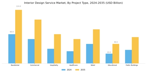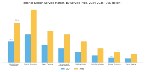 Sustainability has emerged as a pivotal driver in the Global Interior Design Service Market Industry. As environmental awareness grows, consumers are increasingly seeking eco-friendly design solutions that minimize ecological impact. This shift towards sustainable practices encompasses the use of recycled materials, energy-efficient appliances, and designs that promote natural light and ventilation. Interior designers are responding to this demand by incorporating sustainable principles into their projects, which not only appeal to environmentally conscious clients but also align with regulatory trends favoring green building practices. This focus on sustainability is likely to enhance the market's appeal and foster long-term growth.