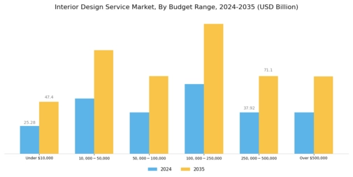 An increase in disposable income among consumers is driving the Global Interior Design Service Market Industry. As individuals and families experience improved financial conditions, they are more inclined to invest in home improvements and interior design services. This trend is particularly pronounced in emerging economies, where a burgeoning middle class seeks to enhance their living environments. The willingness to allocate funds towards professional design services is indicative of changing consumer priorities, where aesthetics and comfort are paramount. This trend is likely to contribute to the market's growth trajectory, with projections indicating a rise to 474.0 USD Billion by 2035.
