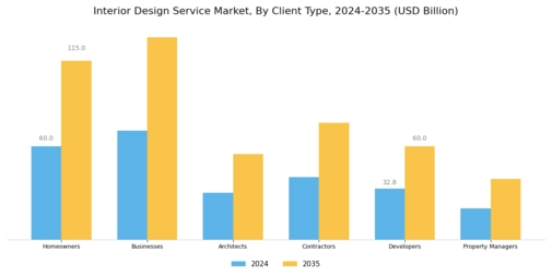 Technological innovations are significantly influencing the Global Interior Design Service Market Industry. The integration of advanced design software and virtual reality tools allows designers to create immersive experiences for clients, enhancing the decision-making process. These technologies enable clients to visualize their spaces before implementation, thereby increasing satisfaction and reducing the likelihood of costly revisions. Furthermore, the rise of online platforms facilitates easier access to design services, catering to a broader audience. As technology continues to evolve, it is expected to play a crucial role in shaping consumer preferences and driving market growth, particularly as the industry adapts to new digital trends.
