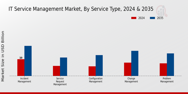 The Global IT Service Management Market Industry is poised for substantial growth, with projections indicating a market size of 37.3 USD Billion in 2024 and an anticipated increase to 70 USD Billion by 2035. This growth reflects a compound annual growth rate (CAGR) of 5.89% from 2025 to 2035. The expansion is driven by various factors, including the rising demand for automation, cloud adoption, and the increasing focus on cybersecurity. As organizations continue to invest in IT service management solutions, the market is expected to evolve, adapting to emerging technologies and changing business needs.