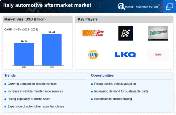 The automotive aftermarket in Italy is experiencing growth due to the increasing average age of vehicles on the road. As vehicles age, the demand for replacement parts and maintenance services rises. In 2025, the average age of cars in Italy is estimated to be around 12 years, which indicates a significant opportunity for aftermarket service providers. Older vehicles often require more frequent repairs and upgrades, leading to increased spending on parts and labor. This trend suggests that consumers are likely to invest in maintaining their vehicles rather than purchasing new ones, thereby driving the automotive aftermarket market. Additionally, the trend of keeping older vehicles operational aligns with the growing consumer preference for cost-effective solutions, further bolstering the market's potential in Italy.