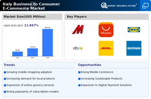 The Italy Business to Consumer E-Commerce Market is characterized by a rapidly evolving landscape that hinges on the growing consumer preference for online shopping and the convenience it offers. With increasing internet penetration and smartphone usage, consumers are increasingly turning to e-commerce platforms for their shopping needs, sparking fierce competition among market players. The market offers a diverse range of products, including electronics, fashion, home goods, and more, each vying for consumer attention in a crowded marketplace. Retailers are focusing on enhancing user experience through optimized websites, mobile applications, and personalized marketing strategies to differentiate themselves.