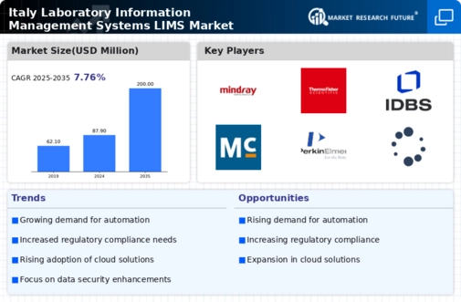 The Italy laboratory information management systems market is experiencing a notable shift towards automation. Laboratories are increasingly seeking to enhance efficiency and reduce human error through automated processes. This trend is driven by the need for faster turnaround times and improved data accuracy. According to recent data, approximately 60% of laboratories in Italy are investing in automation technologies, which is expected to boost the demand for laboratory information management systems. Automation not only streamlines workflows but also facilitates better compliance with regulatory standards, thereby enhancing the overall quality of laboratory operations. As laboratories strive to optimize their processes, the integration of LIMS solutions becomes essential, positioning the Italy laboratory information management systems market for substantial growth.