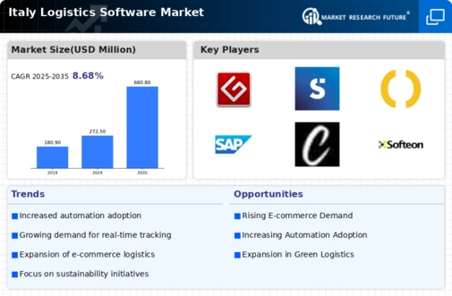 Regulatory compliance and sustainability initiatives are becoming critical factors influencing the Global Italy Logistics Software Market Industry. Companies are required to adhere to stringent regulations regarding emissions and waste management. Consequently, logistics software that assists in compliance tracking and reporting is gaining traction. The emphasis on sustainability is pushing organizations to adopt greener practices, which in turn drives the demand for software solutions that can monitor and optimize resource usage. This trend aligns with the global movement towards sustainable logistics, further propelling market growth.