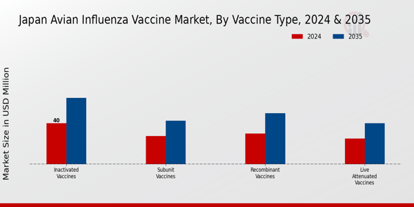 Technological advancements in vaccine development are significantly impacting the avian influenza-vaccine market in Japan. Innovations such as recombinant vaccines and adjuvants are enhancing the efficacy and safety profiles of avian influenza vaccines. Research institutions and pharmaceutical companies are collaborating to develop next-generation vaccines that provide broader protection against various strains of avian influenza. The introduction of these advanced vaccines is likely to increase vaccination rates among poultry, as farmers seek effective solutions to combat the disease. Furthermore, the potential for these technologies to reduce production costs may also attract more stakeholders to the avian influenza-vaccine market, thereby stimulating growth and improving overall poultry health.