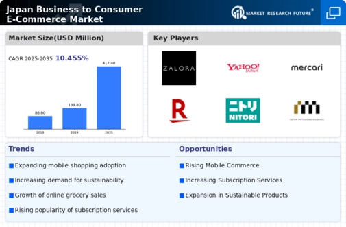 The Japan Business to Consumer E-Commerce Market presents a complex landscape characterized by a blend of traditional values and modern technological advancements. In this market, consumer preferences are continually evolving, driven by the increasing adoption of digital platforms and changing shopping behaviors, particularly after significant societal shifts. Companies in this space are ramping up their strategies to capture the attention of increasingly tech-savvy shoppers who seek convenience, variety, and seamless purchasing experiences.