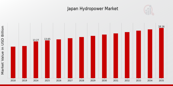 Public awareness regarding the importance of renewable energy sources is growing in Japan, positively impacting the hydropower market. Citizens are increasingly recognizing the need for sustainable energy solutions, which has led to greater acceptance of hydropower projects. Surveys indicate that approximately 70% of the population supports the expansion of renewable energy, including hydropower. This public backing is crucial for the successful implementation of new projects, as it can influence policy decisions and funding opportunities. As community engagement increases, stakeholders in the hydropower market may find it easier to navigate regulatory processes and secure necessary approvals for development.