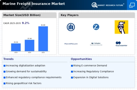 The Global Marine Freight Insurance Market Industry is poised for growth due to the increasing volume of global trade activities. As economies expand, the demand for shipping goods across borders rises, necessitating robust insurance solutions to mitigate risks associated with maritime transport. In 2024, the market is valued at approximately 37.4 USD Billion, reflecting the heightened need for insurance coverage. This trend is expected to continue as trade agreements and international partnerships foster economic interdependence, further driving the demand for marine freight insurance. The industry's growth is indicative of the broader economic landscape, where maritime logistics play a crucial role.