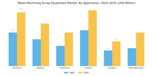 The expansion of the global manufacturing sector is a crucial driver for the Global Metal Machining Scrap Equipment Market Industry. As manufacturing activities increase, so does the generation of metal waste, necessitating efficient scrap processing solutions. Industries such as automotive, aerospace, and construction contribute significantly to metal scrap generation. The rising demand for manufactured goods leads to a corresponding increase in scrap metal, which in turn fuels the need for advanced scrap equipment. This trend is expected to bolster the market, with projections indicating a robust growth trajectory as manufacturers seek to optimize their waste management practices.