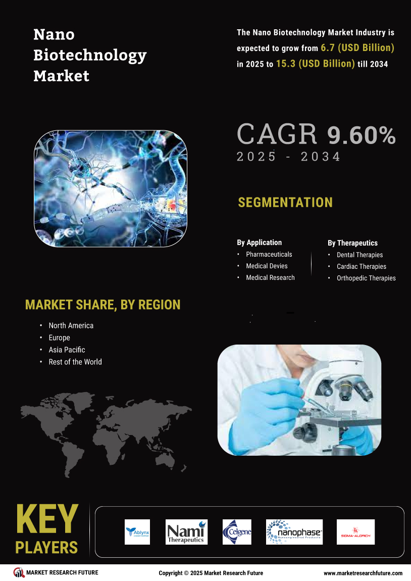 Regulatory support and frameworks are playing a crucial role in shaping the Global Nano Biotechnology Market Industry. Governments are establishing guidelines to ensure the safe and effective use of nanotechnology in various applications, including healthcare and agriculture. This regulatory clarity is fostering innovation and encouraging companies to invest in nanobiotechnology research. As a result, the market is likely to experience accelerated growth, with projections indicating a valuation of 6.12 USD Billion in 2024. The establishment of robust regulatory frameworks is essential for building public trust and facilitating the commercialization of nanotechnology products.