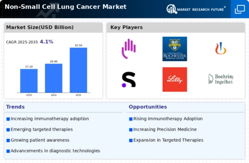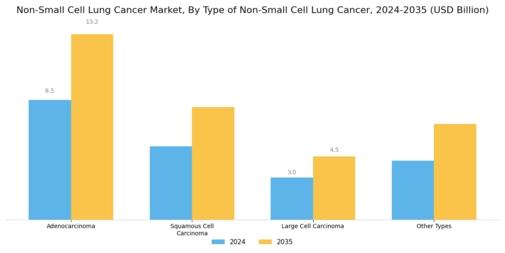 Investment in research and development within the Global Non-Small Cell Lung Cancer Market Industry is on the rise, as pharmaceutical companies and research institutions seek to discover novel treatment options. Governments and private entities are allocating substantial funds to support clinical trials and innovative therapies. This influx of capital is expected to accelerate the development of new drugs and treatment modalities, ultimately enhancing the therapeutic landscape for patients. The commitment to R&D is likely to yield a compound annual growth rate of 4.1% from 2025 to 2035, reflecting the industry's potential for growth and innovation.