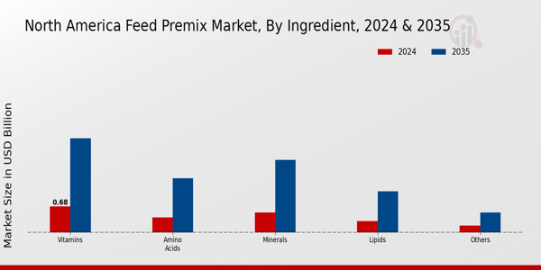 The rising consumer preference for organic and non-GMO products is a significant driver for the feed premix market in North America. As more consumers seek transparency in food production, livestock producers are responding by incorporating organic feed ingredients and non-GMO formulations into their practices. This shift is expected to propel the feed premix market, as organic livestock production is projected to grow at a rate of 5% annually. Producers are increasingly looking for feed premixes that comply with organic standards while still providing optimal nutrition. This trend not only reflects consumer demand but also encourages innovation within the feed premix market, as manufacturers develop products that meet these stringent requirements while ensuring livestock health and productivity.