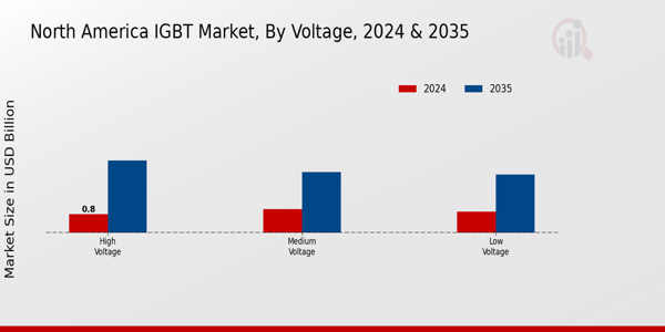 The advancements in electric mobility solutions are driving the IGBT market in North America. With the increasing focus on reducing greenhouse gas emissions, electric vehicles (EVs) are gaining traction. IGBTs are critical components in EV powertrains, enabling efficient energy conversion and management. The North American EV market is expected to witness a growth rate of approximately 15% annually, which will likely lead to a surge in demand for IGBT technology. Additionally, the development of charging infrastructure and battery technologies further supports this trend, creating a robust environment for the IGBT market to thrive.