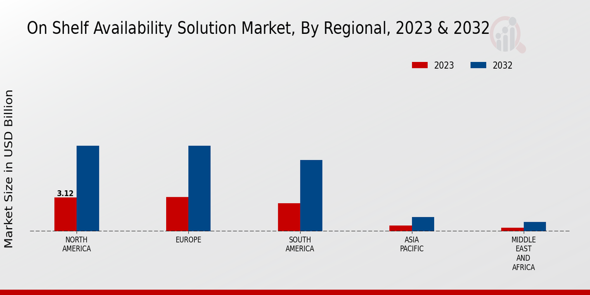 The rapid growth of e-commerce is reshaping the Global On-Shelf Availability Solution Market Industry. Retailers are increasingly adopting omnichannel strategies to provide a seamless shopping experience across physical and digital platforms. This shift necessitates robust inventory management solutions to ensure that products are available both online and in-store. As e-commerce sales continue to rise, the demand for on-shelf availability solutions is likely to increase, enabling retailers to manage inventory more effectively. The projected CAGR of 0.2% from 2025 to 2035 indicates that the industry will continue to evolve in response to changing consumer preferences and shopping behaviors.