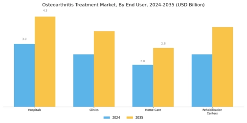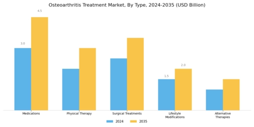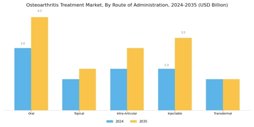 The increase in global healthcare expenditure is a significant factor influencing the Global Osteoarthritis Treatment Market Industry. Governments and private sectors are investing more in healthcare, which enhances access to osteoarthritis treatments. This trend is particularly evident in developed nations, where healthcare budgets are expanding to accommodate the growing needs of aging populations. As healthcare systems allocate more resources to chronic disease management, the demand for osteoarthritis treatments is expected to rise. This financial commitment may lead to improved patient outcomes and satisfaction, ultimately contributing to the market's growth trajectory.