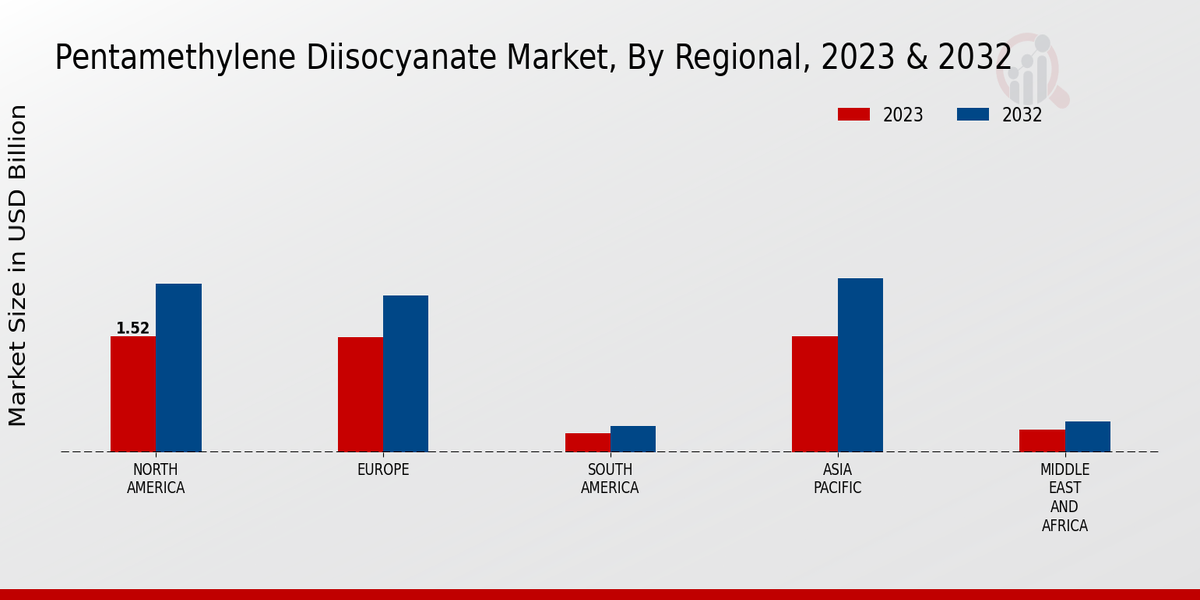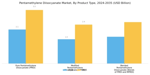 Technological advancements in the production processes of pentamethylene diisocyanate contribute to the Global Pentamethylene Diisocyanate Market Industry's growth. Innovations in manufacturing techniques enhance efficiency and reduce production costs, making the material more accessible to various industries. For instance, the adoption of greener production methods aligns with global sustainability goals, potentially attracting environmentally conscious consumers. As production becomes more streamlined, the market is likely to witness an increase in output, supporting a projected CAGR of 4.2% from 2025 to 2035. This trend indicates a promising trajectory for pentamethylene diisocyanate as industries seek to optimize their supply chains.