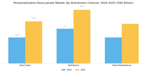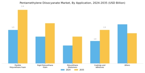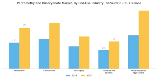 The Global Pentamethylene Diisocyanate Market Industry is significantly influenced by the expansion of construction applications. With urbanization and infrastructure development on the rise, there is an increasing need for durable and high-performance materials. Pentamethylene diisocyanate is utilized in the production of insulation materials, adhesives, and sealants, which are essential for modern construction projects. The market's value is expected to grow, with forecasts indicating a rise to 8.25 USD Billion by 2035. This growth is indicative of the material's versatility and effectiveness in enhancing building performance, thereby solidifying its position in the construction sector.