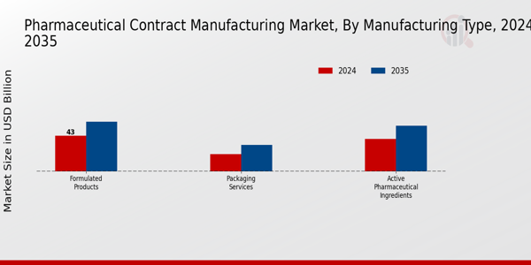 The Pharmaceutical Contract Manufacturing Market is significantly influenced by the expansion of research and development (R&D) activities within the pharmaceutical sector. As companies strive to innovate and bring new drugs to market, the need for specialized manufacturing services becomes increasingly apparent. In recent years, pharmaceutical companies have allocated a larger portion of their budgets to R&D, with expenditures reaching approximately USD 200 billion annually. This trend underscores the reliance on contract manufacturers to provide the necessary expertise and infrastructure to support complex drug development processes. By outsourcing manufacturing, pharmaceutical firms can focus on their core competencies while leveraging the capabilities of contract manufacturers to enhance efficiency and reduce time-to-market for new products.
