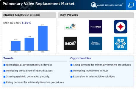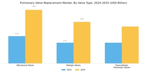 The Global Pulmonary Valve Replacement Market is projected to grow from 1.36 USD Billion in 2024 to 2.47 USD Billion by 2035.