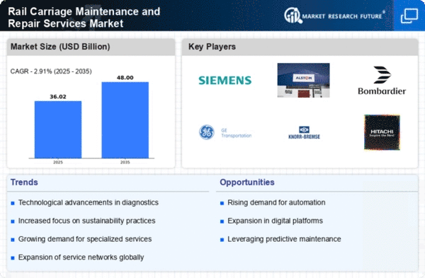 The Middle East and Africa region is gradually developing its Rail Carriage Maintenance and Repair Services Market, with a market size of 1.5 in 2024. The growth is primarily driven by increasing investments in rail infrastructure, particularly in countries like the UAE and South Africa. Government initiatives aimed at enhancing public transport and reducing road congestion are catalyzing demand for rail services, creating opportunities for maintenance and repair providers. In the competitive landscape, local and international players are vying for market share, with companies like Knorr-Bremse AG establishing a presence in the region. The focus on building efficient rail networks is evident, as governments prioritize rail transport as a sustainable alternative. The regulatory environment is evolving, with an emphasis on safety and service quality, which is expected to further stimulate market growth. "Investments in rail infrastructure are crucial for economic development in the region," states the African Development Bank.