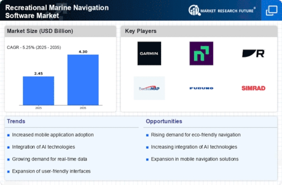 The growing environmental awareness among recreational boaters is emerging as a significant driver for the Recreational Marine Navigation Software Market. As more individuals recognize the impact of boating on marine ecosystems, there is a shift towards eco-friendly navigation solutions. Software that provides information on protected areas, marine life, and environmentally sensitive zones is becoming increasingly popular. Market trends indicate that consumers are willing to invest in navigation tools that promote sustainable boating practices. This shift towards environmentally conscious choices is likely to foster innovation within the Recreational Marine Navigation Software Market, as developers create solutions that align with the values of eco-aware boaters.