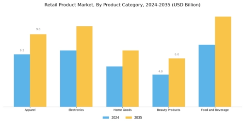 The rapid expansion of e-commerce platforms is a pivotal driver in the Global Retail Product Market Industry. As consumers increasingly prefer online shopping for its convenience, the market is projected to reach 30.2 USD Billion in 2024. This shift is evident in the growing number of digital transactions, which have surged significantly in recent years. Retailers are adapting by enhancing their online presence and optimizing logistics to meet consumer demands. The integration of advanced technologies, such as AI and machine learning, further personalizes the shopping experience, potentially increasing customer loyalty and retention. This trend indicates a robust future for the industry as e-commerce continues to evolve.