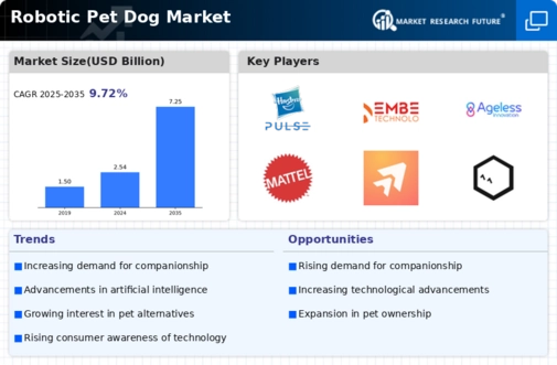 Technological advancements play a pivotal role in shaping the Global Robotic Pet Dog Market Industry. Innovations in artificial intelligence, machine learning, and robotics are enhancing the functionality and interactivity of robotic pets. These advancements enable robotic dogs to exhibit more lifelike behaviors, respond to commands, and engage in social interactions, thereby increasing their appeal. As these technologies continue to evolve, they are expected to attract a wider consumer base, contributing to the market's growth. The anticipated compound annual growth rate of 10.01% from 2025 to 2035 indicates a robust trajectory for the industry, driven by these technological improvements.
