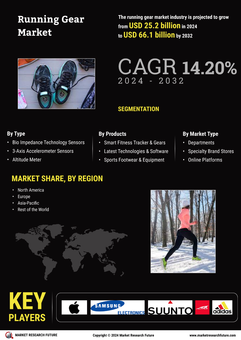 Sustainability initiatives are becoming a focal point in The Global Running Gear Industry. As consumers become more environmentally conscious, brands are increasingly adopting sustainable practices in their manufacturing processes. This includes using recycled materials and reducing carbon footprints. Market Research Future indicates that products marketed as sustainable are witnessing a growth rate of approximately 15% annually, suggesting a strong consumer preference for eco-friendly options. Consequently, companies that prioritize sustainability are likely to gain a competitive edge, appealing to a demographic that values ethical consumption. This shift towards sustainability is expected to significantly influence the trajectory of The Global Running Gear Industry.