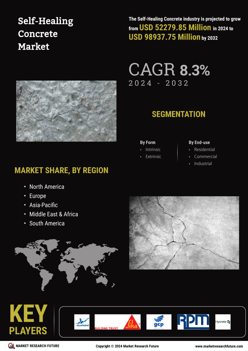 The Global Self-Healing Concrete Market Industry benefits from ongoing technological advancements in material science. Innovations in microencapsulation and bio-based healing agents are enhancing the effectiveness of self-healing concrete. These developments enable the concrete to autonomously repair itself upon cracking, thereby improving durability and reducing maintenance needs. As research continues to evolve, the potential applications of self-healing concrete expand, attracting interest from various sectors, including commercial and residential construction. This technological evolution is likely to contribute to a compound annual growth rate of 14.32% from 2025 to 2035, indicating a promising future for self-healing concrete in the global market.