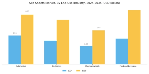 Technological advancements in material science are significantly influencing the Global Slip Sheets Market Industry. Innovations in the production of slip sheets, including the development of stronger and lighter materials, enhance their usability across various sectors. For instance, the introduction of high-density polyethylene slip sheets has improved durability and load-bearing capacity, making them suitable for heavy-duty applications. These advancements not only increase the efficiency of slip sheets but also contribute to their growing acceptance in industries such as automotive and electronics. As the market evolves, the integration of advanced materials is likely to drive further growth, aligning with the projected CAGR of 5.98% from 2025 to 2035.